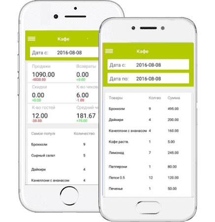 Короткі звіти по закладу або всій мережі ресторанів на смартфон: